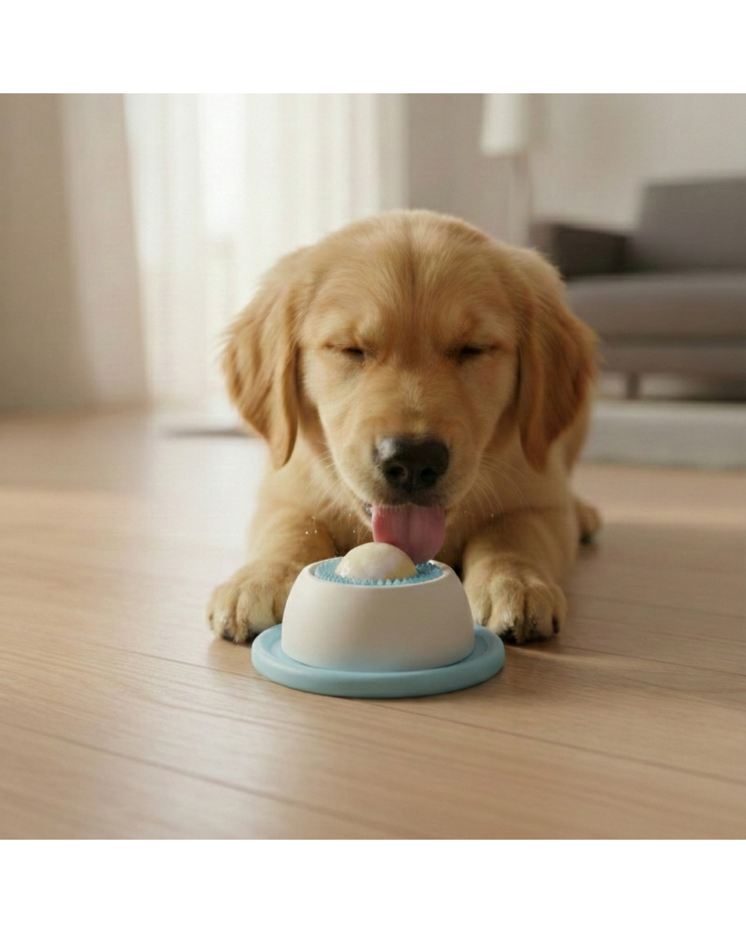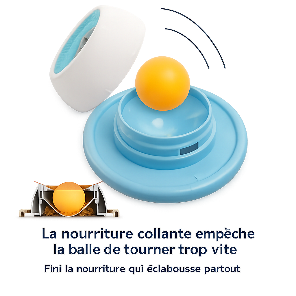 Votre chien fait tourner la balle pour récupérer la nourriture. Il mange lentement, se stimule par le léchage et s'apaise naturellement.